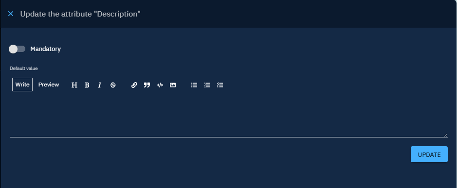 The example above shows the case of the attribute architecture implementation of a malware. You have some information here. First, it seems we have a default value already set in entity settings for this attribute with the value [powerpc, x86]. However, we want to override this value with another one for our case: [alpha].