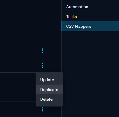 If you need to modify your previous configuration, we recommend to duplicate the CSV mapper using the duplicate option in the burger button.