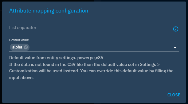 Note that adding default values in settings have an impact at entity creation globally on the platform, not only on CSV mappers. If you want to apply those default values only at CSV mapper level, please use the second option.