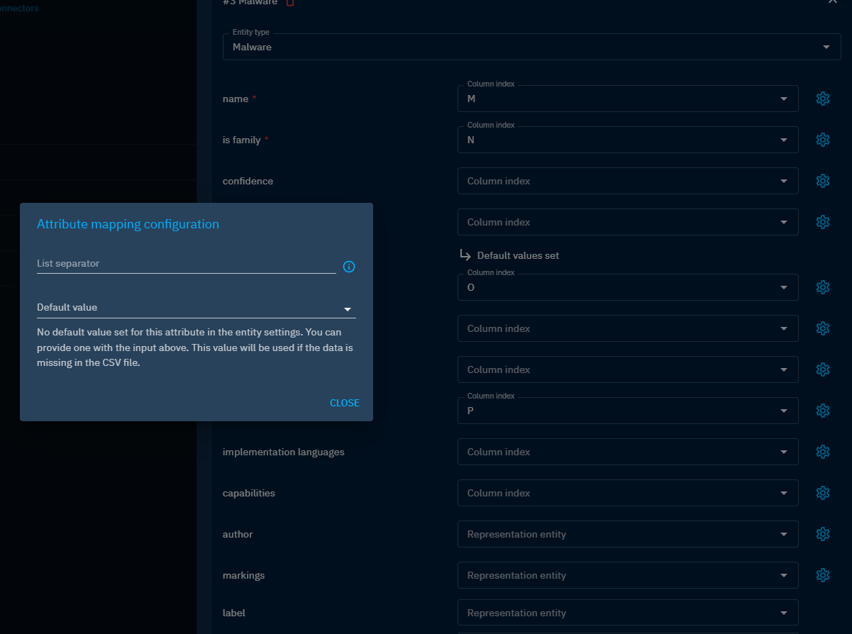 The mapper contains representations of STIX 2.1 entities and relationships, in order for the parser to properly extract them. One mapper is dedicated to parsing a specific CSV file structure, and thus dedicated mappers should be created for every specific CSV structure you might need to ingest in the platform.