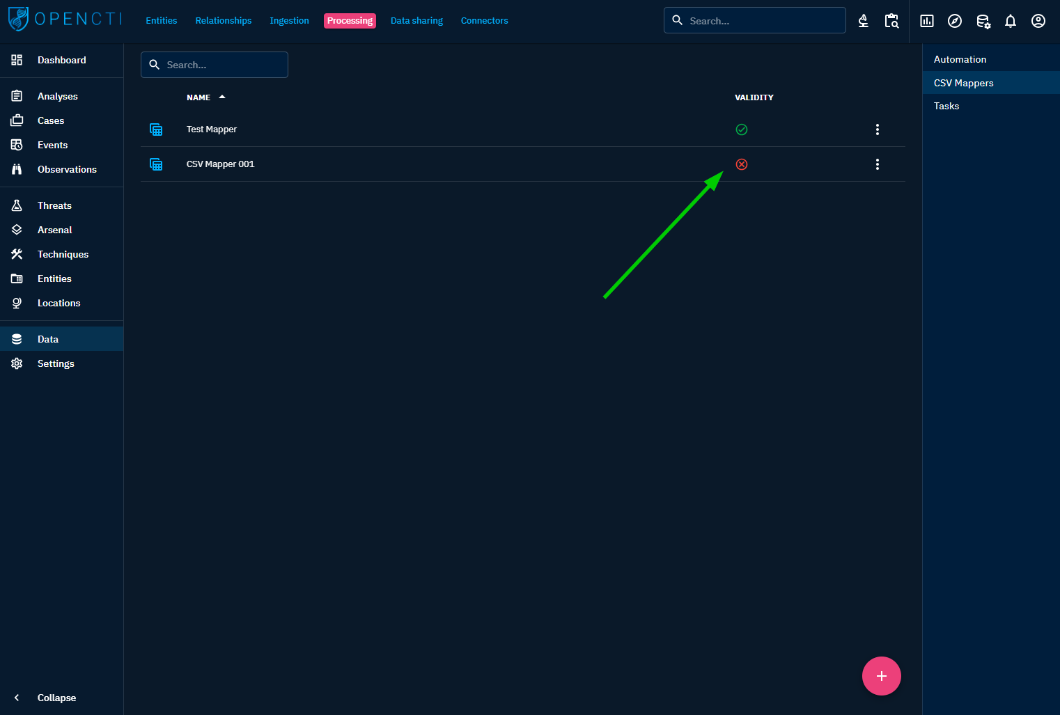 Mapper validity is visible in the list of CSV Mappers as shown below.