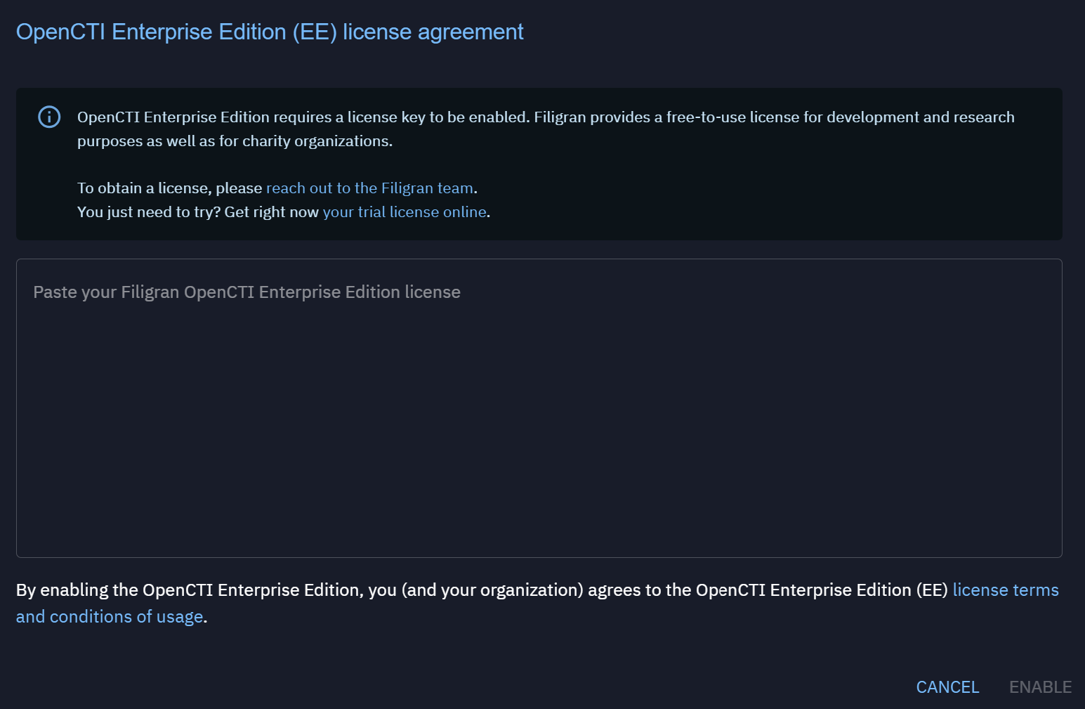 - The OpenCTI Enterprise Edition is licensed under the OpenCTI Enterprise Edition License (the "Enterprise Edition License").