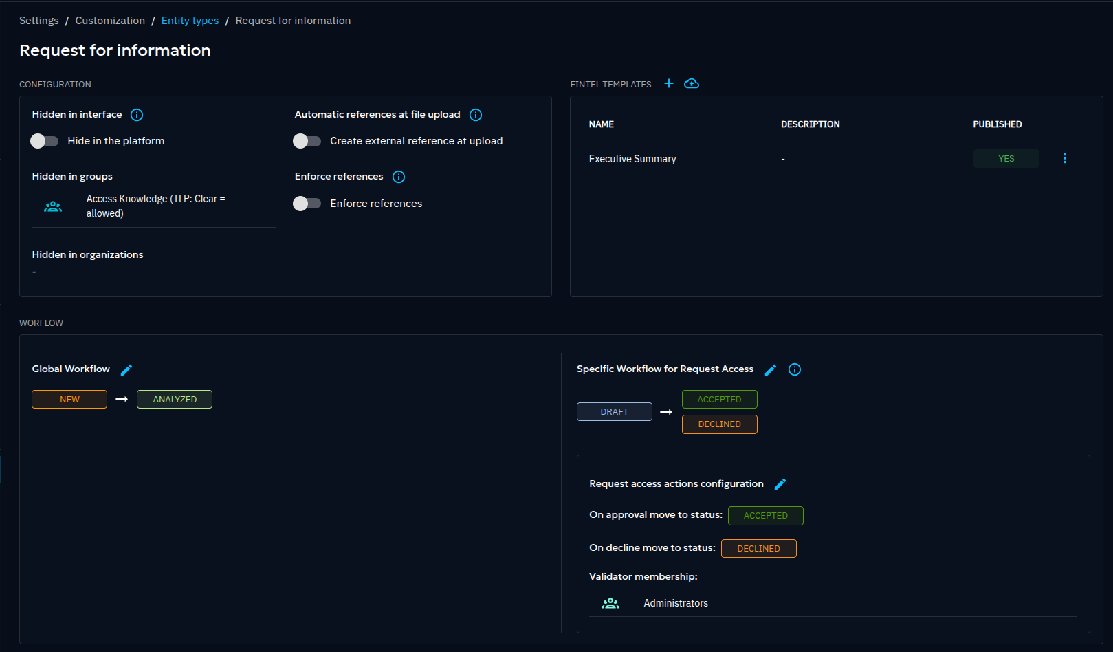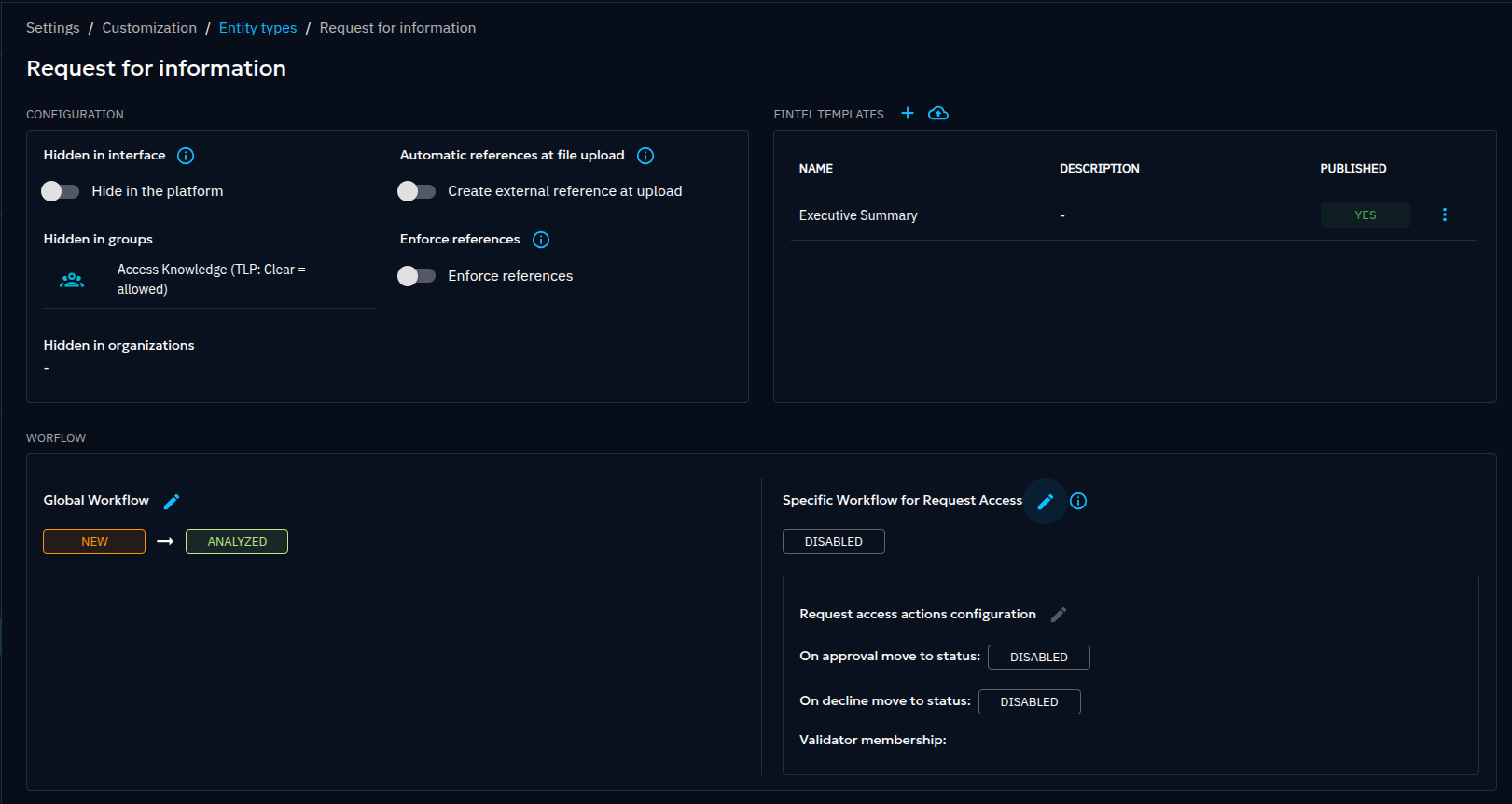 - In entity setting, delete all status in "Specific Workflow for Request Access" section.