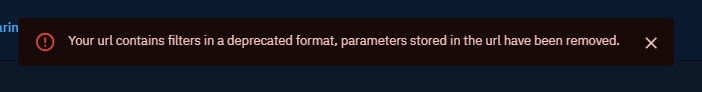 Also, when going to an url with filters in the old format, OpenCTI will display a warning and remove the filter parameters. Only URLs built by OpenCTI 5.12 are compatible with it, so you will need to reconstruct the filters by hand and save / share your updated links.