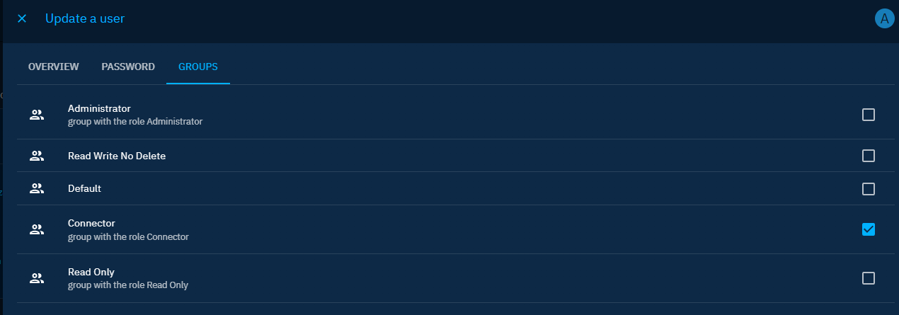 Be careful, we strongly recommend to use a dedicated token for each connector running in the platform. So you have to create a specific user for each of them.