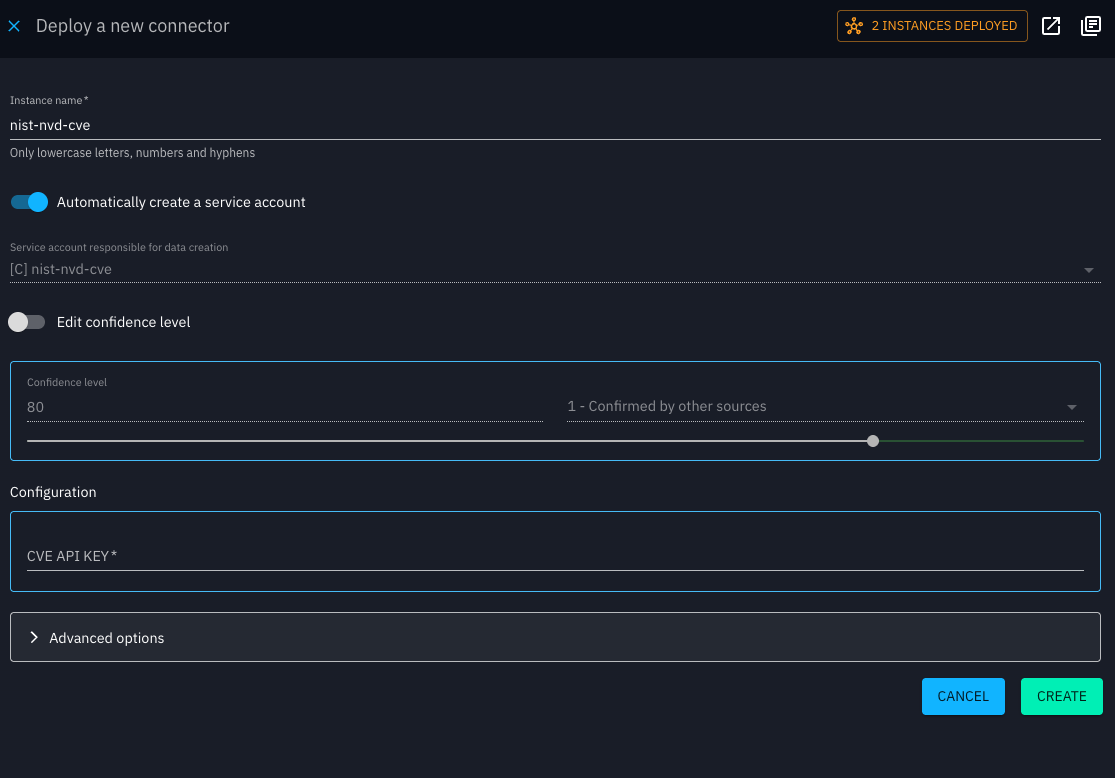 - Click Create. Once the connector is created, you will be redirected to the connector instance view.