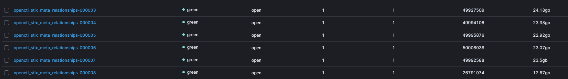 opencti_stix_meta_relationships: it contains all the nested relationships between objects and labels / marking definitions / external references / authors, etc. - Index