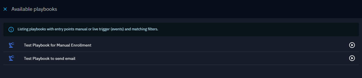 - active playbooks that have set an "Available for manual enrollment / trigger" event source
