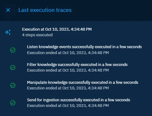 At the top right of the interface, you can access execution trace of your playbook and consult the raw data after every step of your playbook execution.