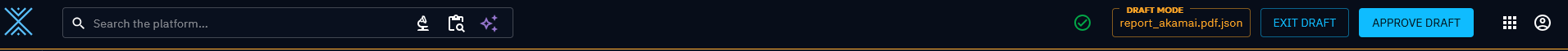 When in a draft, the top bar is modified as a reminder that everything done in the platform will only impact the current draft.