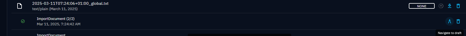To quickly move into the draft and see the result of a file import, a Navigate to draft icon is available.