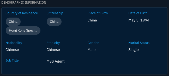 Individual Threat actors have unique properties to represent demographic and biographic information. Currently tracked demographics include their countries of residence, citizenships, date of birth, gender, and more.