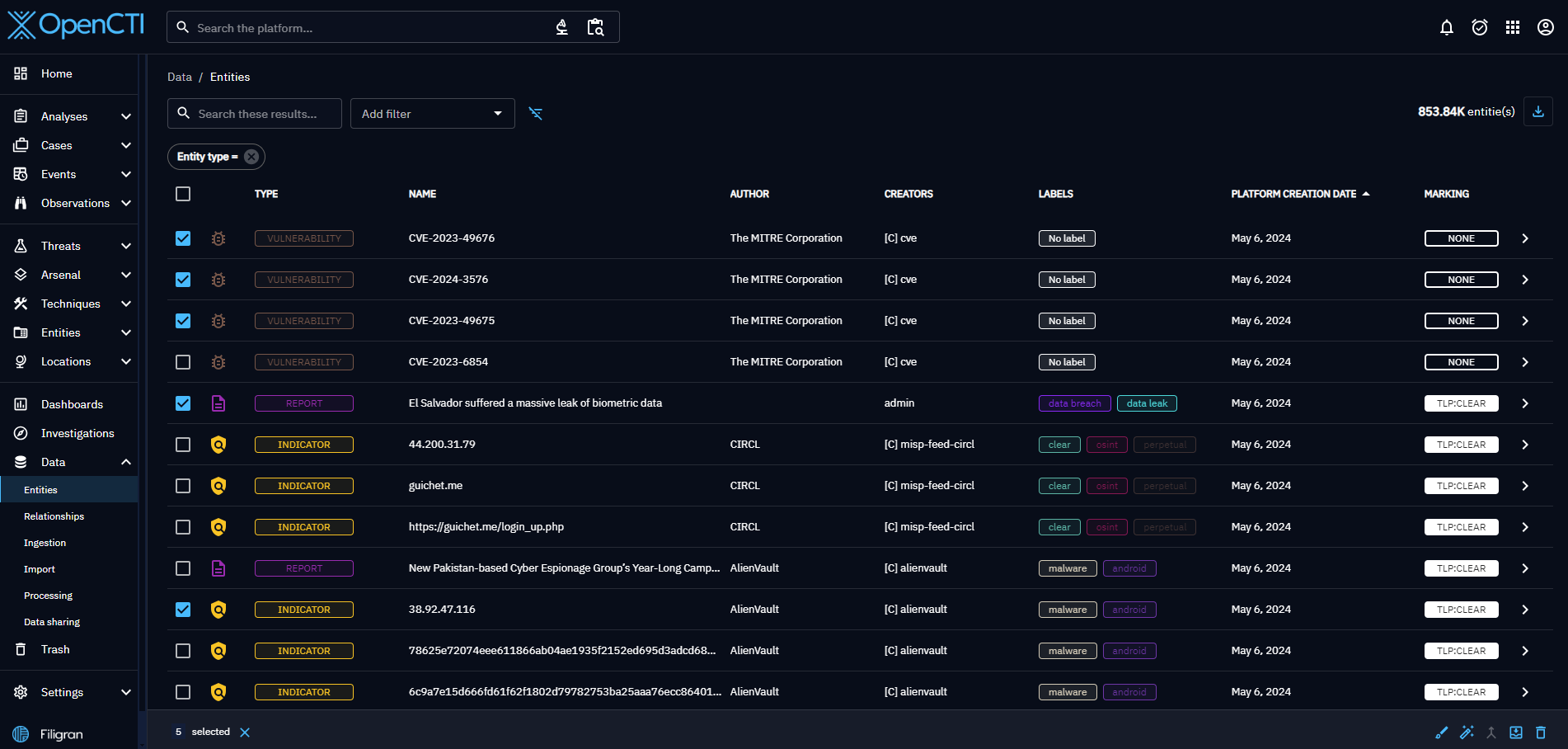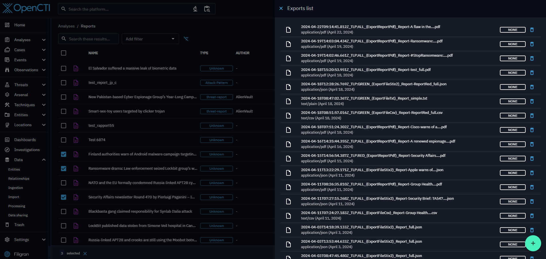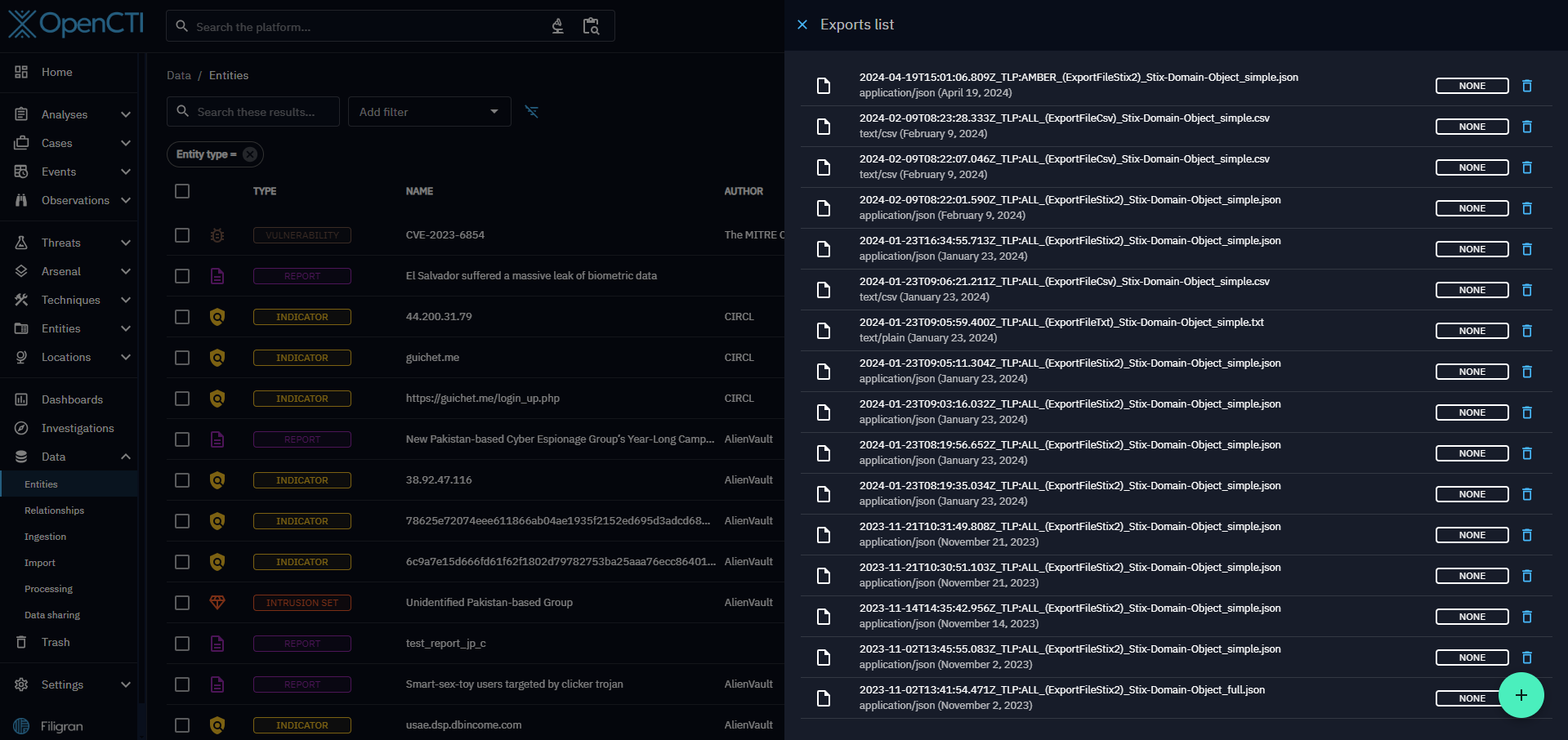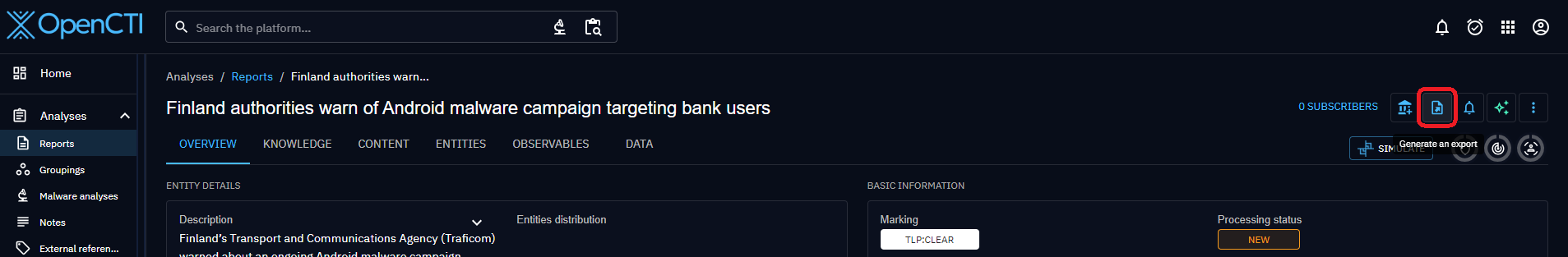 With the OpenCTI platform, you can manually export your intelligence content in the following formats: