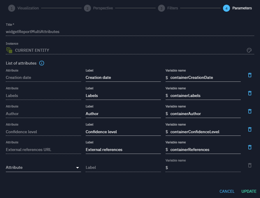 You can choose the type of your file (html or pdf), its name, its marking, and the maximum markings of the entities that may be included in the file. Indeed a template can include lists of entities (for instance, the indicators contained in your container) and you may want to restrict the displayed entities according to their markings.