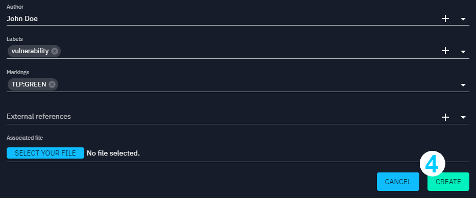 Fill other fields if necessary. Pay attention that for others fields than Name, all the created entities will have the same values. For example if I set a Marking to TLP:GREEN, all four malwares will have this marking.