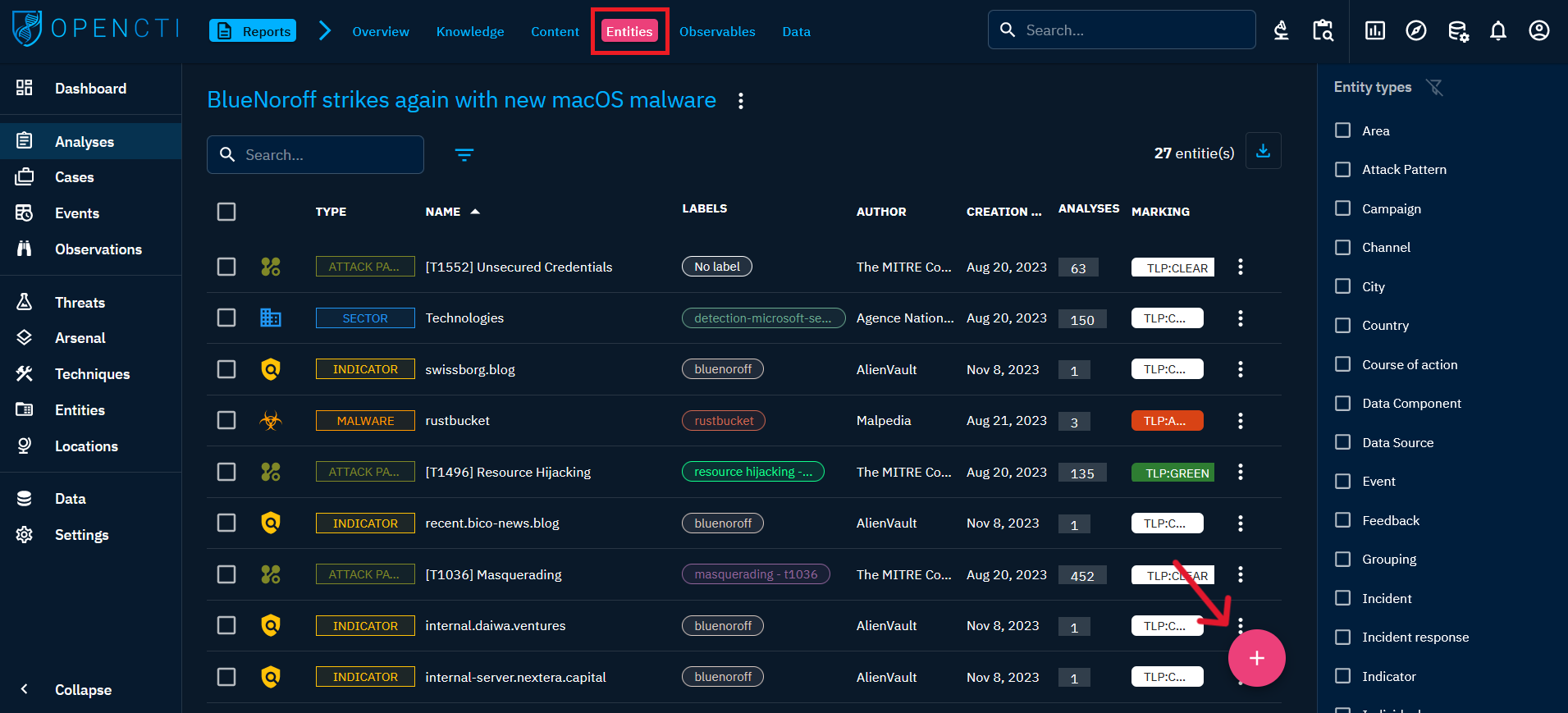 These supplementary methods offer users flexibility and convenience, allowing them to adapt their workflow to various contexts within the OpenCTI platform. As users explore the platform, they will naturally discover additional means of creating entities and relationships.