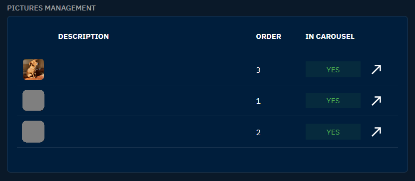 - Pictures Management: allows to manage the profile pictures attached to the entity.