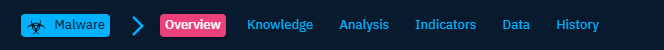 First, you will find the Details section, where are displayed all properties specific to the type of entity you are looking at, an example below with a piece of malware: