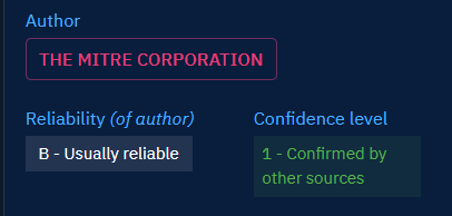 Using both Reliability and Credibility is an advanced use case for most of CTI teams. It requires a mature organization and a well staffed team. For most of internal CTI team, a simple confidence level is enough to forge assessment, in particular for teams that concentrate on technical CTI.
