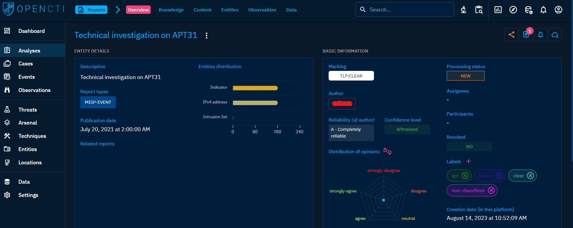Thus in OpenCTI, we have made the choice to fuse the notion of Credibility with the Confidence level that is commonly used by the majority of users. They have now the liberty to push forward their practice and use both Confidence and Reliability in their daily assessments.