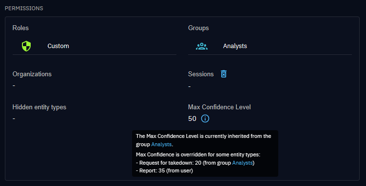 • if a user maximum confidence level is set, it overrides everything from groups, including the overrides per entity type defined at group level