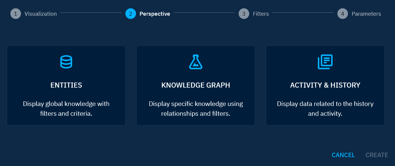 - Activity & History Perspective: Centers on activities within the platform, not the knowledge content. This perspective is valuable for monitoring user and connector activities, evaluating data sources, and more.