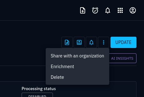 From the Security Coverage page, you can check the status of the Enrichment Connector's work in the Enrichment menu (top-right):