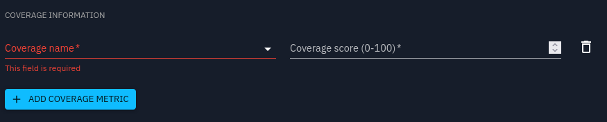A manual Security Coverage requires specifying which metrics are going to be manually assessed, in order for the creation form to be valid: